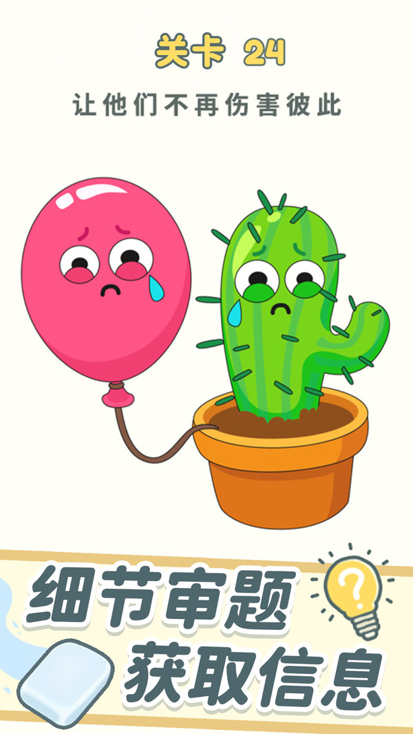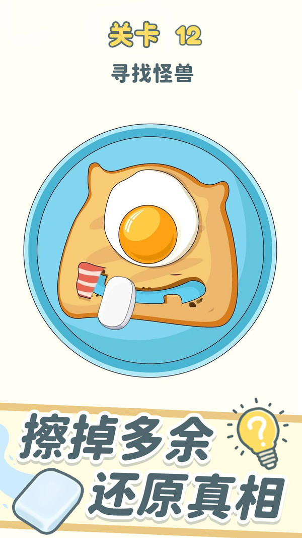 腦洞橡皮擦游戲的整體操作玩法難度并不大,主要考驗(yàn)的是玩家的靈活應(yīng)變能力。每一個(gè)游戲關(guān)卡都有不同的趣味解謎玩法,你需要根據(jù)相應(yīng)的任務(wù)提示,成功找到正確答案。