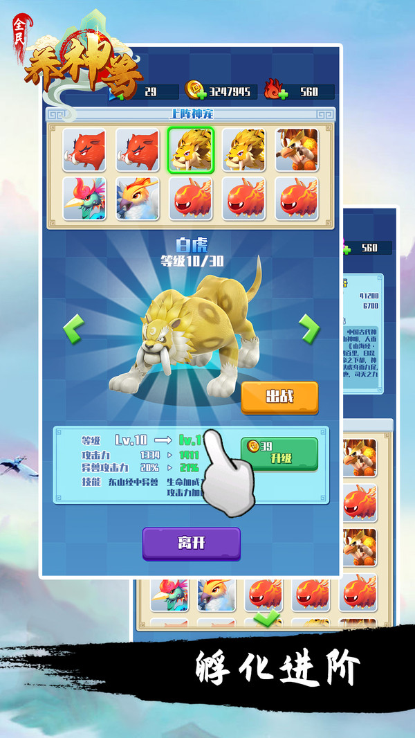 3、高級(jí)神獸進(jìn)化還有額外福利,分紅解鎖要到后期,掛機(jī)養(yǎng)成速度更快。