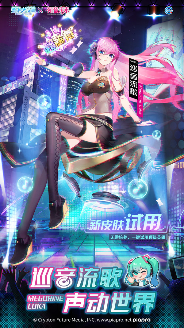 初音未來降臨愛琳大陸,送福利啦!初音未來專屬禮包碼:MIKUALSP,400連抽禮包碼:SSR100,SSR300,額外送千萬金幣(禮包碼MW1000)!登錄就送SSR!輕松組建屬于自己的專屬女神隊(duì)伍! 愛琳大陸一年一度的音樂節(jié),正在如火如荼地舉行著。從異世界穿越來到愛琳大陸的初音未來,應(yīng)曙光女神歐若拉的邀請,在伙伴巡音流歌的陪同下,一步一步集合大陸上所有音樂愛好者,解決籌備音樂節(jié)過程中的困難,最終給所有人展現(xiàn)了一場美輪美奐的音樂演出!
