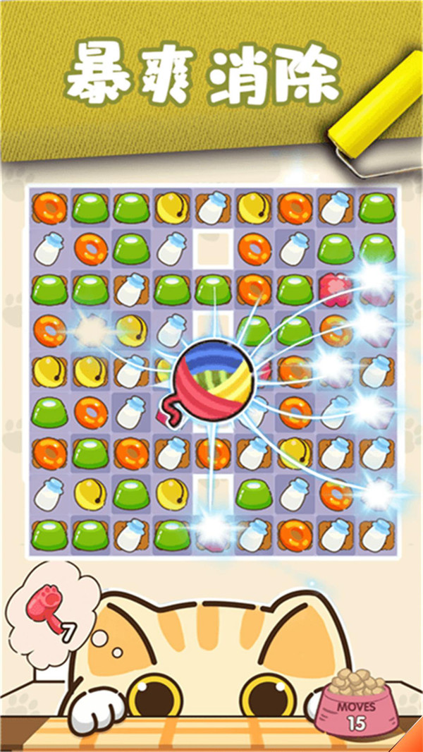 -通過相鄰位置互換,將三個以上相同方塊橫向或豎向并列起來,消除障礙并完成目標。一次性達成多個方塊相連,將會產(chǎn)生特殊機能的新方塊。