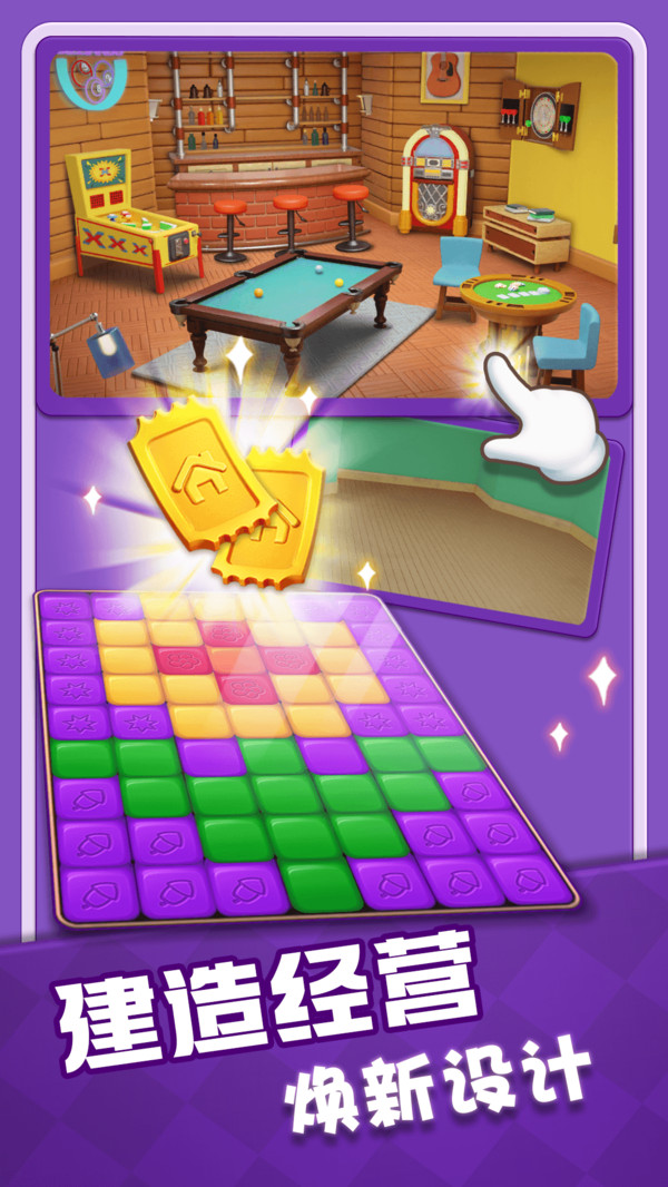 歡迎各位建筑師來到奇幻消除!開啟有趣又富有挑戰(zhàn)的消除裝修之旅吧! 錘子、火箭、風(fēng)車等,各種炫酷又強大的消除組合技,讓您的消除體驗無比爽快! 從大廳到廚房、再到臥室、有十多個區(qū)域等你來建造,發(fā)揮您的創(chuàng)造才能,自定義打造您的專屬豪宅! 個人、團隊大比拼,一起拿下【冠軍聯(lián)賽】的王者稱號!好玩不停,快來體驗吧!奇幻消除中有著豐富的關(guān)卡在等待著你,經(jīng)典的操作方式,對于大部分玩家是比較容易的,沒有基礎(chǔ)的玩家也可以跟著新手教程快速上手??蓯鄣挠螒虍嬅?,炫酷的消除特效還有輕松歡快的背景音樂,無一不是吸引你的最佳原因。我們在游戲中不斷的消除獲得積分,享受游戲給我們帶來的樂趣,多種任務(wù)等待著你去完成。