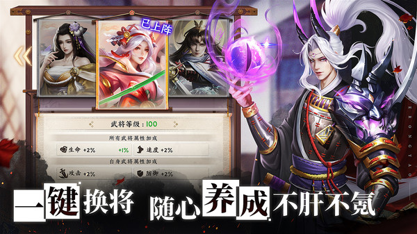 1、收集養(yǎng)成各種顏值出眾、人設鮮明、戰(zhàn)力逆天的武將。