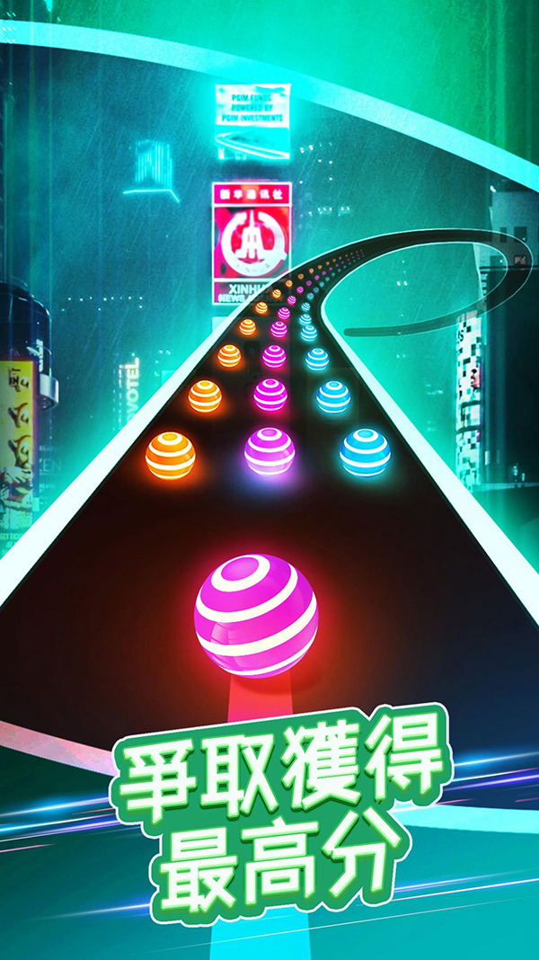 進(jìn)入游戲后,只需要控制著小球,不斷的向前移動(dòng)即可。