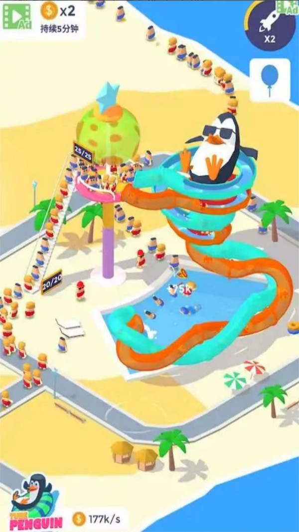 水上游樂(lè)場(chǎng)是一款水上樂(lè)園競(jìng)賽游戲。準(zhǔn)備好在全球最瘋狂的水上樂(lè)園模擬環(huán)境,挑戰(zhàn)最極限的滑水道動(dòng)作!在下滑過(guò)程中撞開(kāi)其他玩家或飛出軌道走捷徑,在螺旋形、循環(huán)形及各種不同形狀的水道上一路彈跳,竭盡所能才能求得生存!究竟你是會(huì)被水沖走,還是證明自己是水上樂(lè)園專家?現(xiàn)在就跳入水道找出答案吧!