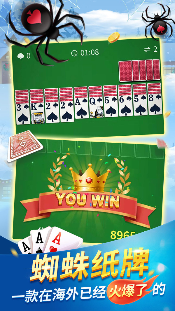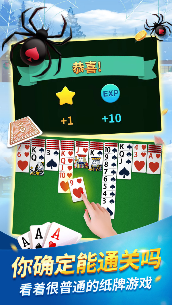 經(jīng)典蜘蛛紙牌--是原汁原味的、免費(fèi)的蜘蛛紙牌游戲。 “蜘蛛紙牌”一直很受大眾歡迎,是家喻戶曉、全家參與的益智類游戲,承載了幾代人的回憶。 我們的“經(jīng)典蜘蛛紙牌”是最純粹的蜘蛛紙牌版本,讓您隨時(shí)隨地重溫經(jīng)典。蜘蛛紙牌玩法非常吸引人,讓人沉浸,放松心境;上手很簡(jiǎn)單,卻能引人入勝。 當(dāng)你感覺到壓力大的時(shí)候,玩一下蜘蛛紙牌,可以很好的緩解壓力。蜘蛛紙牌是接龍游戲玩法的一種演變,如果您喜歡玩紙牌接龍,空擋接龍,金字塔接龍,塔羅牌等經(jīng)典紙牌游戲,請(qǐng)一定不要錯(cuò)過蜘蛛紙牌! 您一定會(huì)喜歡上這款經(jīng)典蜘蛛紙牌: