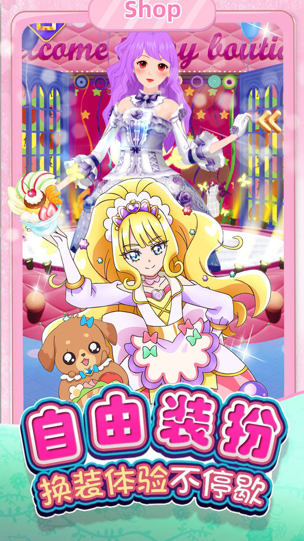 1.非常精美的場(chǎng)景,和公主進(jìn)行互動(dòng)對(duì)話,簡(jiǎn)約清新的換裝畫面風(fēng)格等你來解鎖