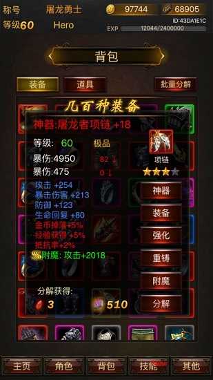 1、百種裝備,強化,附魔,打造,最強力的神器裝備需要刷怪掉落;