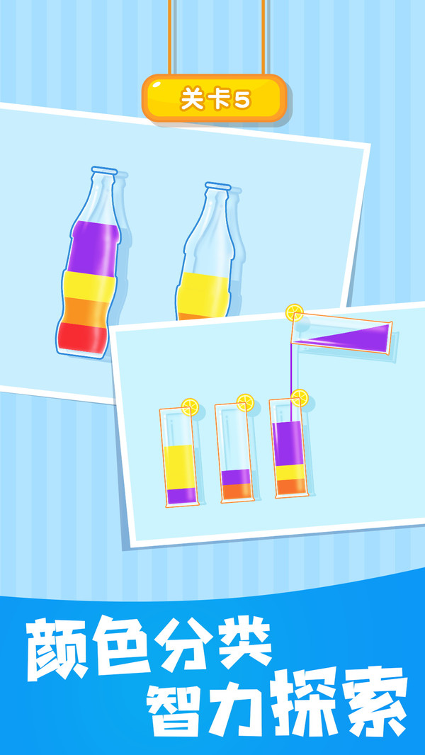 《倒水大師》是一款趣味益智游戲,游戲中有著十分豐富的關(guān)卡,玩法規(guī)則十分簡(jiǎn)單,玩家需要將玻璃杯中的水按照顏色進(jìn)行分類排序,讓不同顏色的水聚集到同一個(gè)玻璃杯中,一個(gè)具有挑戰(zhàn)性且令人放松的游戲來鍛煉您的大腦!