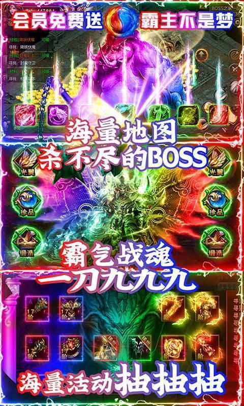 超高暴擊,玩家開(kāi)局就送屠龍刀,一刀直接秒殺boss。