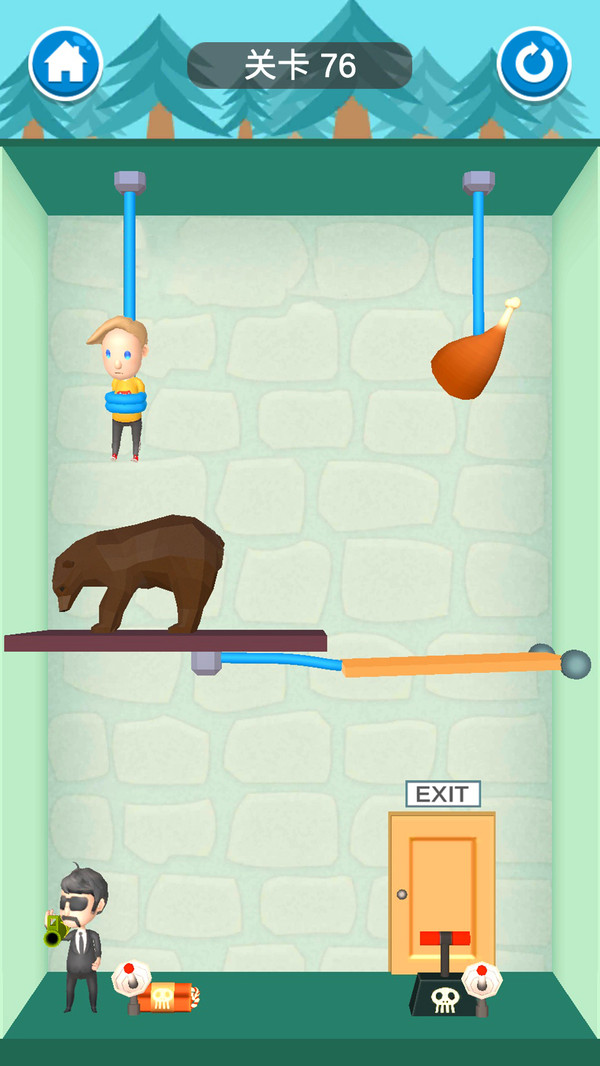 -用手指輕掃繩索并進(jìn)行切割,救熊孩子逃出房間。