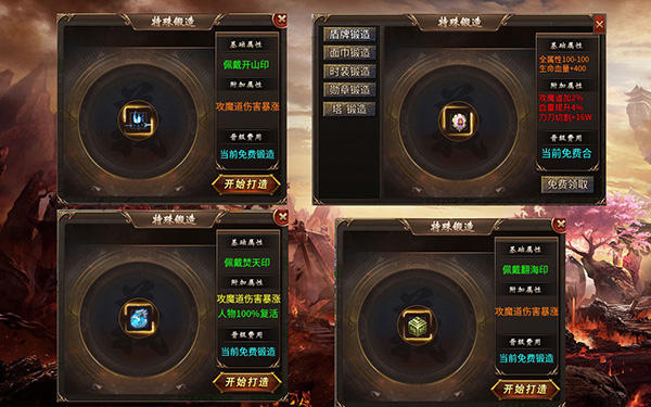 土城開(kāi)山印,翻海印,梵天印,天焚練氣塔,時(shí)裝,面巾,勛章,盾牌,全部免費(fèi)送,后期特殊合到頂級(jí)也可一路白嫖,本服元寶消耗低,產(chǎn)出多。