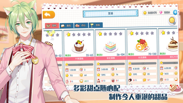 【打造甜品王國貓咪美男來幫忙】想不想經(jīng)營一家屬于自己的甜品呢?《萌貓物語》幫你實現(xiàn)!貓咪男子將手把手教你如何開店、如何制作甜品、如何布置獨具一格的店鋪,與貓咪男子們共同努力溫馨的甜品店吧!