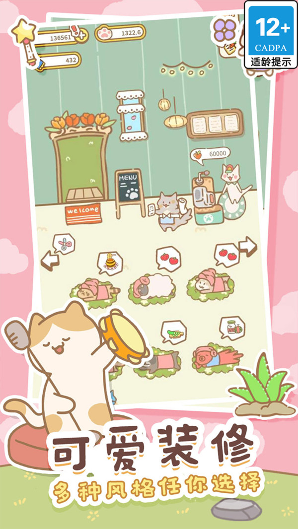 3、游戲畫風(fēng)充滿治愈力,和可愛的小貓一起服務(wù)客人,打造歡樂放松的環(huán)境。