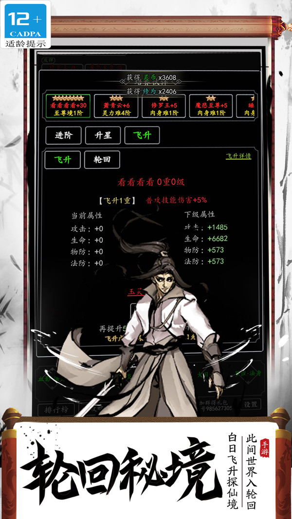《飛天魅影》是一款超休閑護肝的文字修真手游!這里沒有武俠江湖的刀光劍影,血雨腥風(fēng)。 沒有凡塵俗世勾心斗角,爭名奪利。你需要拋棄一切雜念,冥想打坐,修心修身,一心追尋無上仙道! 內(nèi)修仙法,外淬肉身,修丹道,煉法器,淬靈根,養(yǎng)靈寵,拜名師,尋仙緣,度雷劫,全方位修仙系統(tǒng),還原最真實的修真世界!道友來修真,一日即飛升!浩蕩仙途今日起,道友速來比一比,急速飛升,你有多快,樂趣多多,玩法多多,通過不斷地戰(zhàn)斗,你的實力就會得到快速提升,你可以得到的游戲魅力將會是獨一無二的,相當(dāng)?shù)赜腥?,相?dāng)?shù)睾猛?,一定不要錯過了!