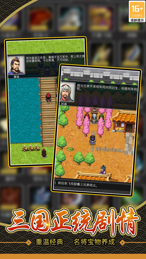 -經(jīng)典高清重制 體驗(yàn)養(yǎng)成樂(lè)趣- 游戲整體上延續(xù)了童年的經(jīng)典畫風(fēng),但同時(shí)升級(jí)了UI畫面,角色、地圖色彩更加清晰鮮明。 還有玩家的角色養(yǎng)成樂(lè)趣,庫(kù)房糧草、酒館任務(wù)將讓主公更加沉浸三國(guó)歷史,收獲一段難忘的主公傳奇。