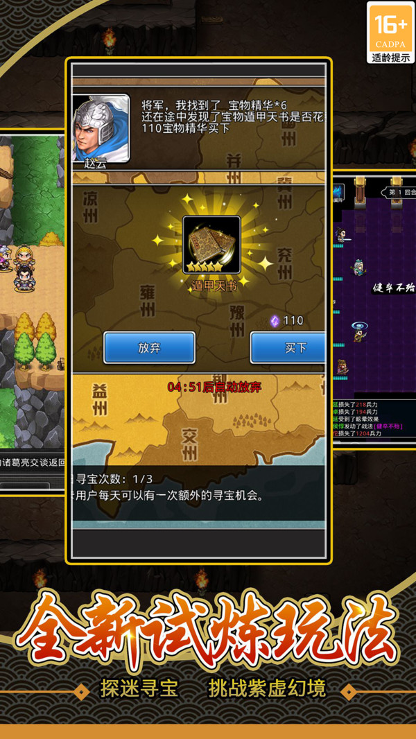 全新的紫虛幻境玩法,有機(jī)會(huì)和所有武將并肩作戰(zhàn),獲得絕世寶藏;還有禁地試煉、尋寶等福利玩法助主公一臂之力。