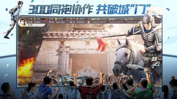 山河藏兵 “假動(dòng)作”偷襲 225萬格沙盤,全都是真實(shí)的山川河流地形。你能派大隊(duì)在東面山道佯攻,再派主力部隊(duì)繞西面河流偷襲,靠“假動(dòng)作”暗度陳倉。 12大特殊兵種 布“陣”克敵 真實(shí)還原三國傳奇兵種,虎豹騎、無當(dāng)飛軍、白馬義從、藤甲兵待你率領(lǐng)。兵種之間相互克制,巧用“陣”容搭配,攻敵軟肋以少勝多。 300同袍協(xié)作 共破城“門” 同盟300盟友按戰(zhàn)術(shù)部署分工協(xié)作,指揮、前鋒、攻城各司其職;全盟勠力同心,萬里城“門”亦可攻破。 萬人混戰(zhàn) 爭奪九州之“冠” 超大規(guī)模團(tuán)戰(zhàn),上萬玩家實(shí)時(shí)同屏。搶城池,奪關(guān)口,角逐天下中心洛陽,用策略奪得九州之“冠”!