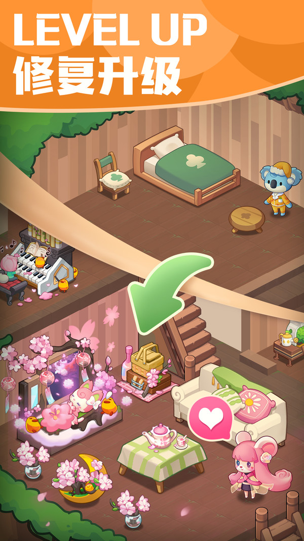 -種田建設(shè),打造家園- 結(jié)識(shí)萌動(dòng)有趣的小動(dòng)物們,一起建設(shè)家園,裝扮專屬于你的商業(yè)街,解鎖全新電影院、花店和噴泉。還有各種節(jié)日限定主題活動(dòng)和皮膚,你的森林裝扮由你決定!
