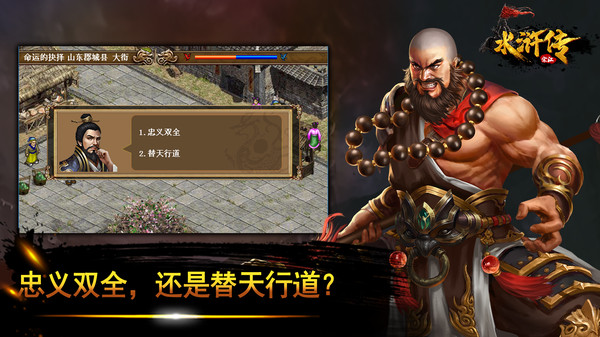 游戲到中后期有兩條支線,共61關(guān),根據(jù)玩家在游戲中的選擇會(huì)有多種不同的結(jié)局,水滸中的主要人物都會(huì)在游戲中出現(xiàn),并具有各自不同的兵種特色,而且在戰(zhàn)場(chǎng)上將獲得各種寶物裝備,玩家可通過(guò)合理的搭配及巧妙的布陣過(guò)關(guān)斬將,或許你將改變歷史!