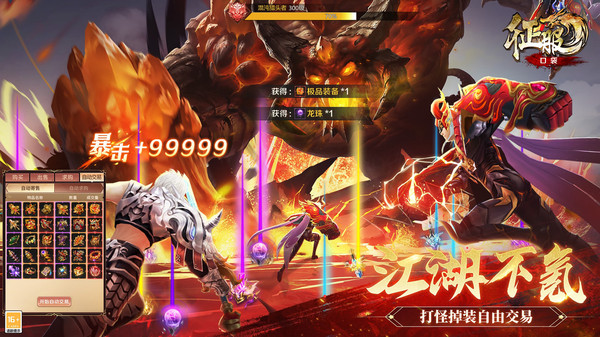 -百倍爆率自由交易全屏收割,滿(mǎn)屏掉落,極品裝備全靠打,開(kāi)放式的游戲玩法,和兄弟一起稱(chēng)霸指尖江湖。