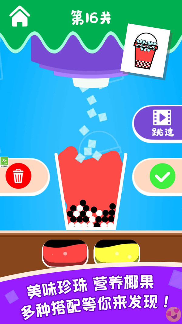 完美的下午茶,從一杯奶茶開(kāi)始!游戲中你會(huì)經(jīng)營(yíng)一家奶茶店。收到不同的奶茶訂單,然后我們需要根據(jù)不同客戶的要求制作不同的奶茶。歡喝奶茶的你怎么能不會(huì)泡奶茶呢? 快來(lái)一起制作你最愛(ài)的波波奶茶,加上你最愛(ài)的珍珠布丁吧!