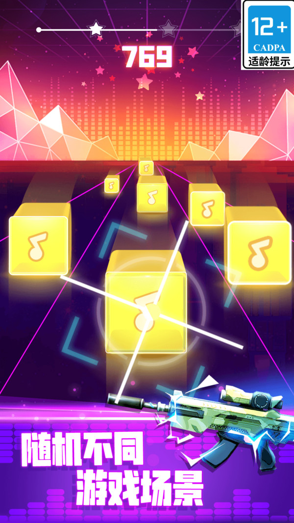 你想體驗(yàn)不同的音樂游戲嗎?那么子彈節(jié)奏3D就是為你設(shè)計(jì)的游戲! 它結(jié)合了單指控制游戲玩法和精心挑選的熱門流行歌曲,讓你沉浸在音樂與節(jié)奏槍聲的3D場(chǎng)景中,音符不斷出現(xiàn),并跟隨音樂的節(jié)奏,滑動(dòng)手指,調(diào)整槍的方向,打破音符。不要錯(cuò)過任何音符,收集來的鉆石可以用來解鎖新的音樂和槍的皮膚。子彈節(jié)奏游戲是一款超級(jí)有趣的手機(jī)游戲,在這款游戲中,玩家們將會(huì)享受到不一樣的游戲的玩法,而且游戲中,玩家們還將會(huì)享受到不一樣的游戲的玩法,而且游戲中玩家要跟隨不同的解鎖利用不同的武器來擊落音符,完成不同的挑戰(zhàn)獲得很多的獎(jiǎng)勵(lì)吧。