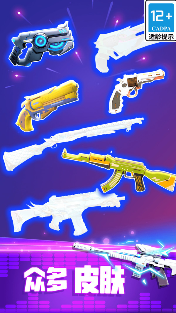 2.時(shí)在游戲內(nèi)玩家可解鎖不同類型的武器的皮膚,選擇不同的節(jié)奏音樂,玩法豐富。