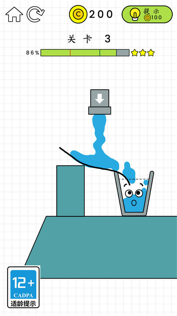 歡樂水杯是一款輕松休閑的益智游戲,利用了物理,需要將水運送到空的玻璃杯里面,想出你自己的解決辦法,所以要有創(chuàng)造性,不要倉促思考。非常有趣的休閑闖關(guān)手游,在游戲中玩家將需要通過畫出線條讓水全部流進杯子當(dāng)中以順利過關(guān).游戲操作簡單,關(guān)卡眾多,每一關(guān)都有著不同的創(chuàng)新設(shè)計,給玩家?guī)順O致的游戲體驗。