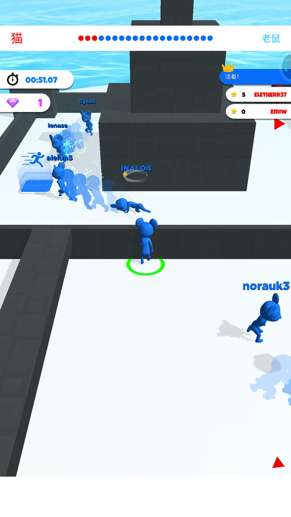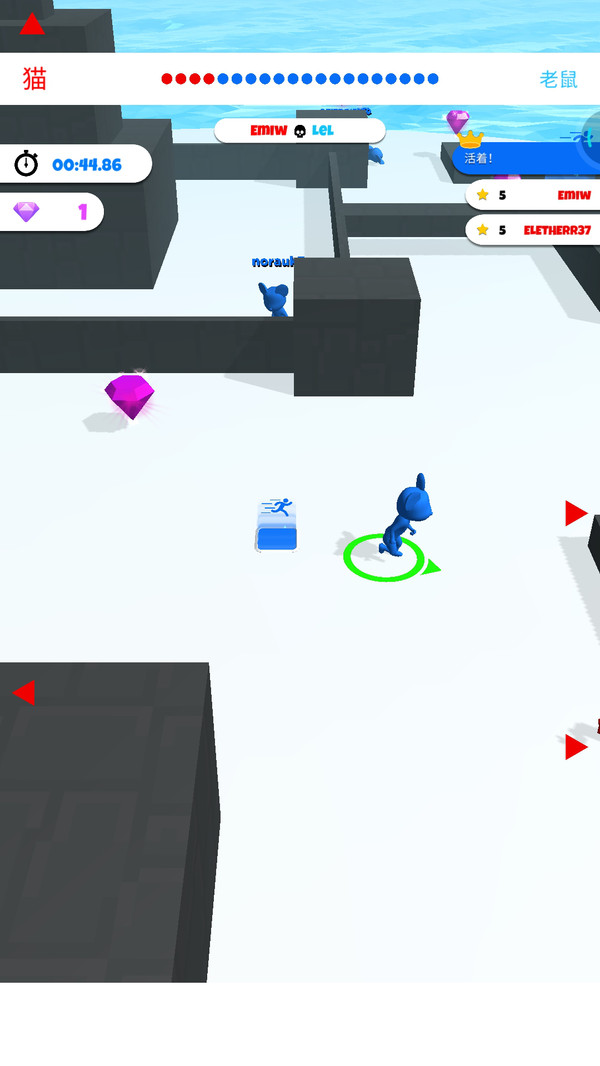 3.每局游戲持續(xù)五分鐘,作為老鼠方的玩家則需要拖過這一段時間就能獲勝。