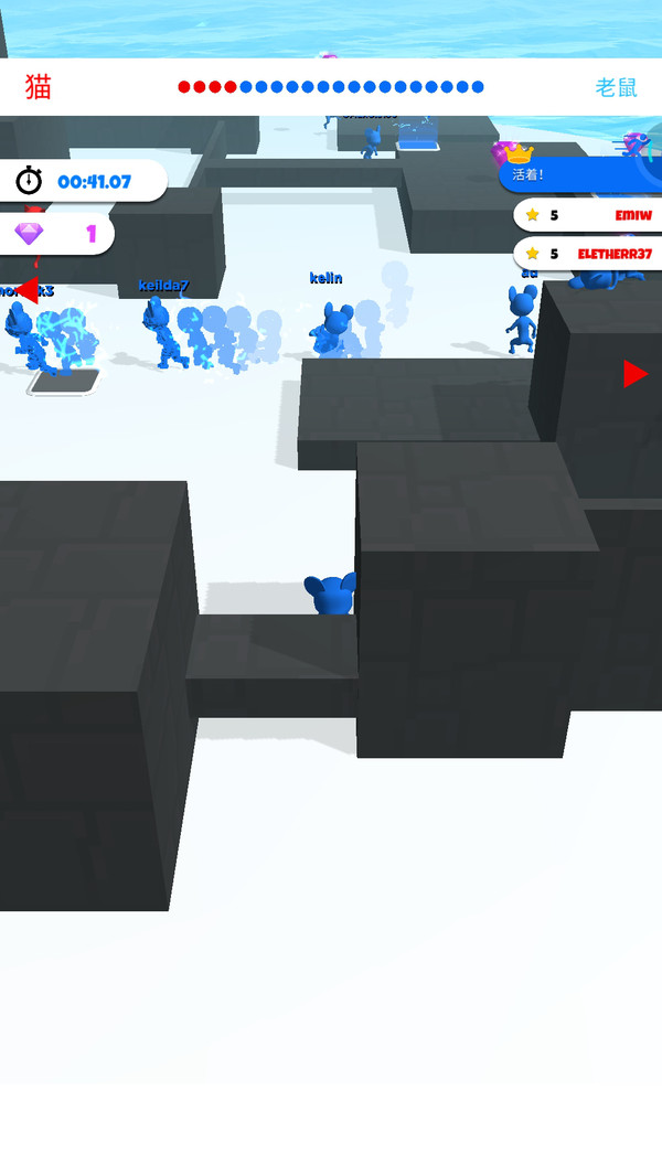 1.界面上方會先輸出當(dāng)前老鼠和貓的具體玩家數(shù)量,紅色代表貓藍(lán)色代表鼠。