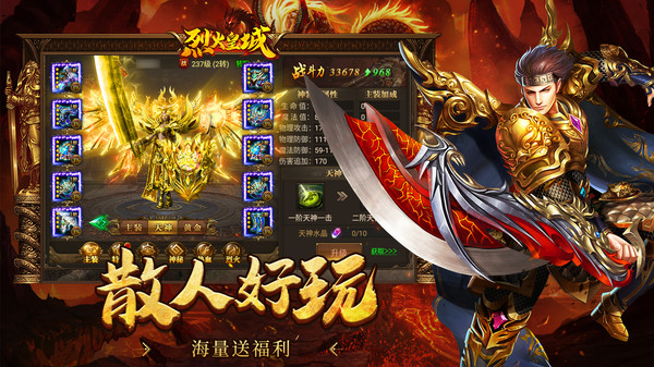 烈火皇城是一款經(jīng)典的傳奇游戲,全新傳奇,熱血回歸,還原經(jīng)典,英雄回歸不容錯過! 烈火皇城,千人同屏,熱血爭霸,和兄弟一起共謀傳奇霸業(yè)! 三英雄自由選擇,自由合體,玩法千變?nèi)f化 熱血重燃,經(jīng)典重現(xiàn),寫實畫面,萬人攻城戰(zhàn),跨服自由PK,為戰(zhàn)斗而生。烈火皇城在這里玩家可以選擇喜歡的職業(yè)進行體驗,培養(yǎng)自己的角色,在這個傳奇大陸當中開啟屬于你的冒險,還有各種不同的精彩獎勵,帶來更加強大的裝備。高自由的打法,可以在各種戰(zhàn)斗當中帶來更多的精彩體驗,還有各種不同的故事劇情,海量的任務(wù)為玩家?guī)砀嗟莫剟睢?