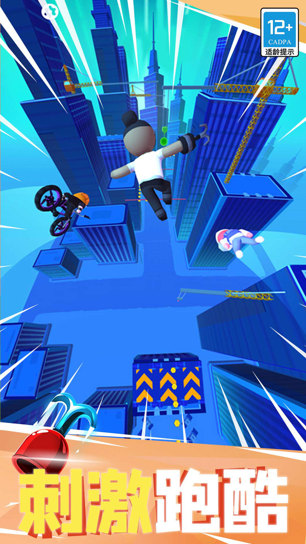1.魔性的跑酷游戲,穿梭樓宇之間,在空中翱翔,大家一起乘風破浪。