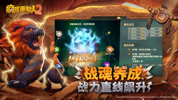 《瘋狂原始人2》版本全面更新!戰(zhàn)魂系統(tǒng)、部落玩法、雕像展示及功能完善一應(yīng)俱全! 各位酋長(zhǎng)們,帶上你的策略與戰(zhàn)術(shù),來(lái)原始戰(zhàn)場(chǎng)好好打上一場(chǎng)!享受運(yùn)籌帷幄的快樂(lè)與登峰造極的成就!手游采用了全新的戰(zhàn)斗回合制玩法,游戲中還有非常豐富的游戲道具可供玩家自由選擇,炫酷的游戲特效,帶給玩家別樣精彩的游戲體驗(yàn)。瘋狂原始人2游戲采用的寫(xiě)實(shí)的3D游戲畫(huà)面風(fēng)格,將會(huì)為玩家真實(shí)還原電影里那個(gè)遠(yuǎn)古的部落,相遇那些瘋狂的原始人!