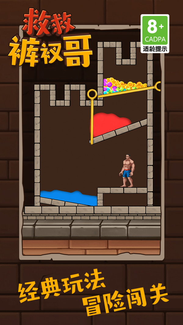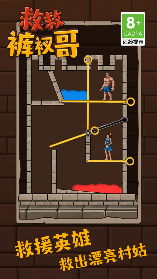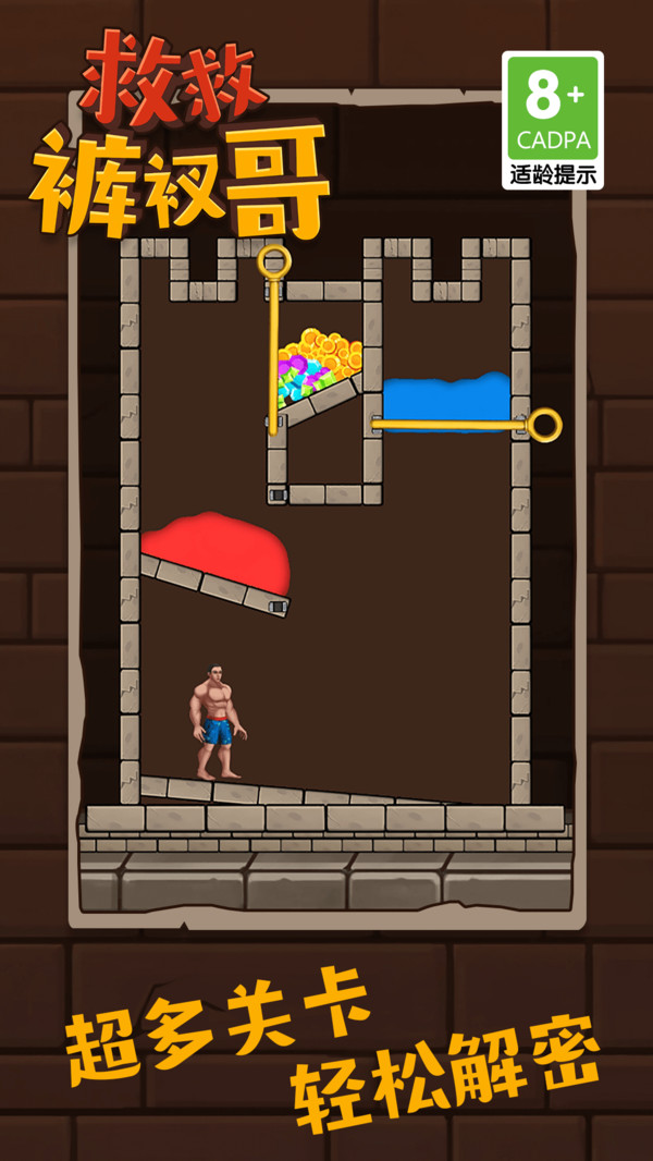 一款經(jīng)典的密室闖關(guān)類游戲,運(yùn)用你的智慧,幫助褲衩哥獵殺怪獸,成功闖關(guān)吧!關(guān)卡多多,獎(jiǎng)勵(lì)豐厚!不知名的原因,我方褲衩哥被困在一個(gè)小小空間,空間內(nèi)還有怪獸時(shí)刻威脅他的安全,現(xiàn)在可以幫助到褲衩哥的人只有你:移動(dòng)空間內(nèi)的橫桿,利用空間內(nèi)的水源或者氣體,幫助褲衩哥智斗小怪獸、救援小伙伴,每成功救援一次,都可以得到金幣獎(jiǎng)勵(lì)呦。故事的主角是一個(gè)穿著花褲衩的猛男,他在一個(gè)城堡中冒險(xiǎn)著,采用拉針的益智玩法,我們需要讓褲衩哥先拿到武器,然后和怪獸作戰(zhàn)。