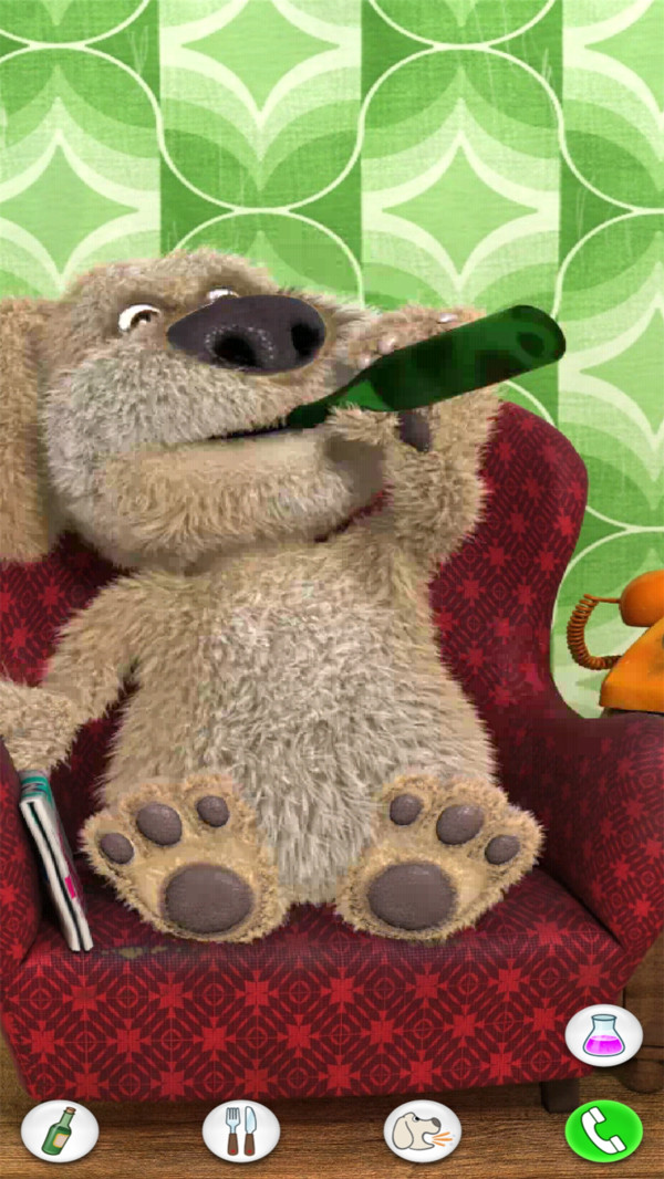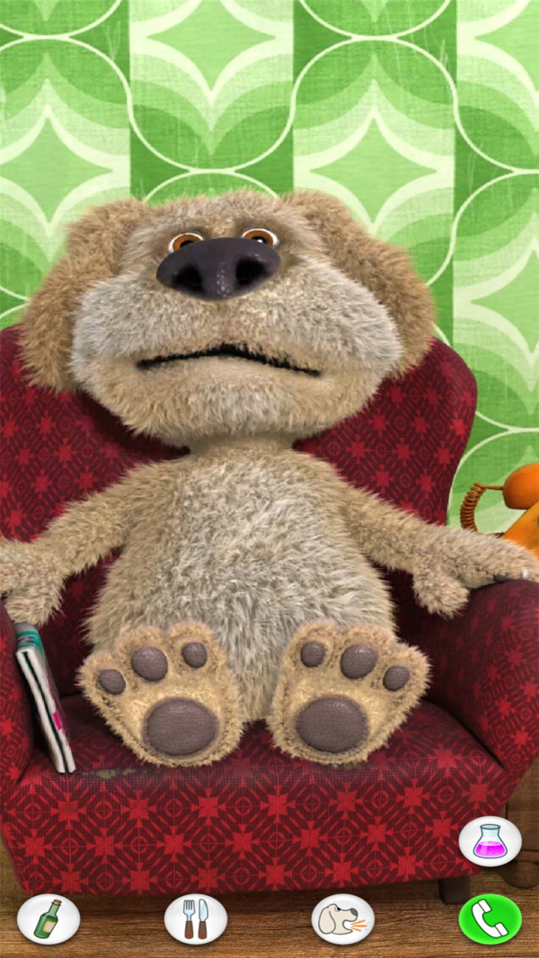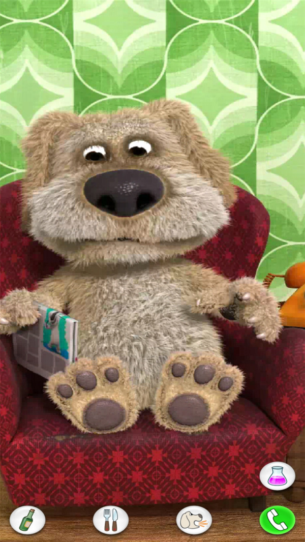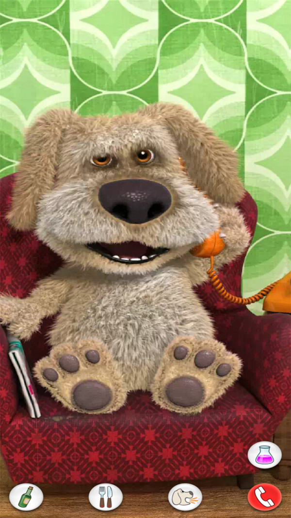會(huì)說(shuō)話的狗狗本是一款非常有趣的卡通手游,狗狗本是一名退休的化學(xué)教授, 他很享受品嘗美食、美酒和閱讀報(bào)紙的愜意生活。要使他做出反應(yīng), 你需要煩擾他足夠長(zhǎng)的時(shí)間, 這樣他就會(huì)合上手中的報(bào)紙。你還可以和他說(shuō)話, 戳他或撓他癢癢, 甚至跟他電話交流。玩家在會(huì)說(shuō)話的狗狗本游戲中可以與可愛(ài)的狗狗本互動(dòng),你可以戳它的臉、腳或手,狗狗本會(huì)給你不同的表情變化,你也可以與他說(shuō)話哦,他會(huì)用幼稚的聲音重復(fù)你說(shuō)的話,非??蓯?ài)。