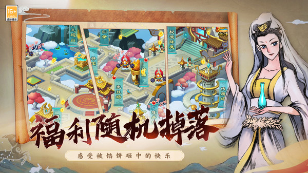2. 游戲中有很多熟悉的角色,每個(gè)角色都可愛又好玩,包括哪吒、孫悟空、唐僧、楊戩等等。