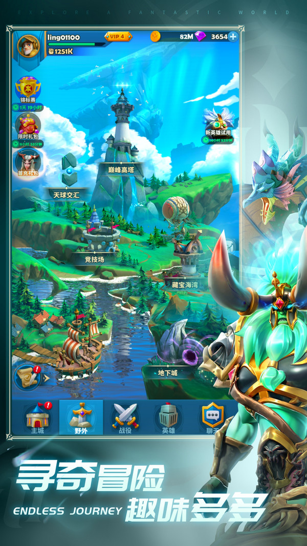 2.各種不同的英雄角色等著你來收集,來提高他們的實(shí)力,因而成為你最強(qiáng)的組合團(tuán)隊(duì)。
