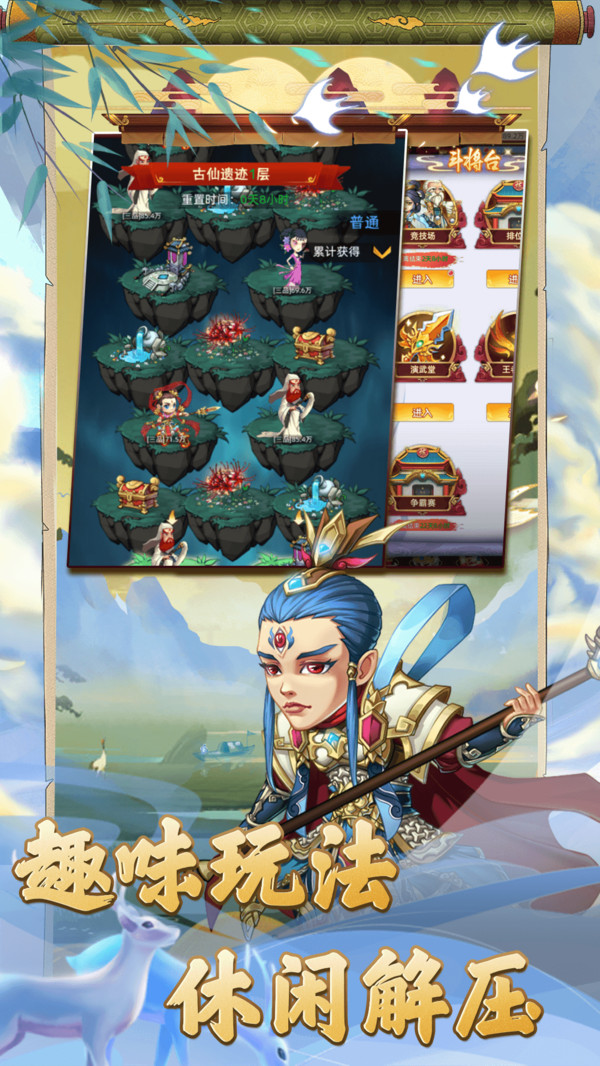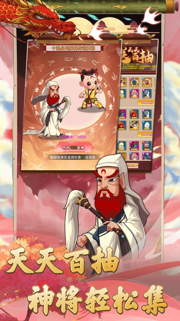 -經(jīng)典重現(xiàn),懷舊回憶,原汁原味還原國漫人物角色造型,寄托大家童年時(shí)光的情懷! 首日登錄來玩即可領(lǐng)取100連抽,高概率尋仙獲得傳說神將,無限升星,體驗(yàn)滿神將陣容夢幻開局! 同職業(yè)等級,神器一鍵提升,戰(zhàn)斗輕松快速,經(jīng)典IP與流行玩法并存的精品卡牌