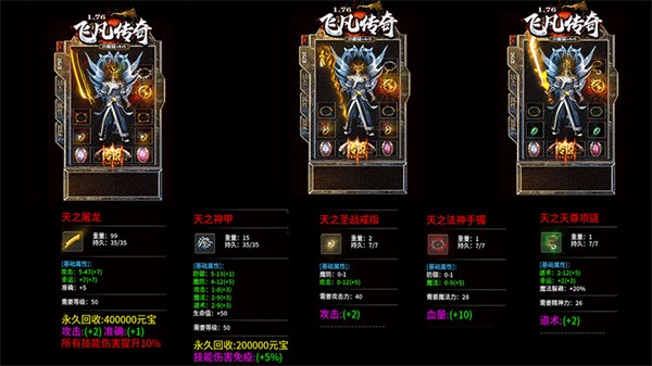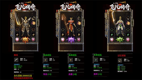 1、飛凡傳奇176復(fù)古,1.76復(fù)古小極品,屠龍赤月為終極。