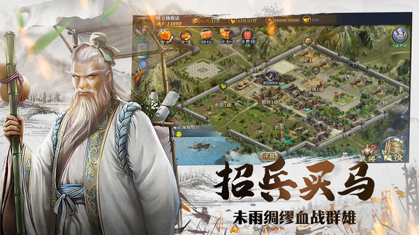 城池經(jīng)營(yíng)、城防建設(shè)、兵將培養(yǎng)多個(gè)維度發(fā)展國家。 百姓稅收、材料征收、資源掠奪等多個(gè)玩法獲取資源。