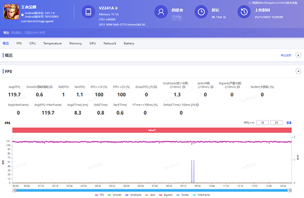 考慮到如今很多年輕的手機用戶都喜歡玩游戲,vivo X90這次還帶來了更好的游戲優(yōu)化技術(shù),能夠全方位提升用戶的游戲體驗。尤其是對于愛玩《王者榮耀》的朋友來說,vivo X90帶來了王者榮耀自適應(yīng)畫質(zhì)模式,該模式能讓用戶享受到高幀率和極致畫質(zhì)的視覺享受,而且打開該模式后,游戲的幀率穩(wěn)定性也會有所提升,游戲運行更快、更流暢。另外,vivo X90還擁有雙芯游戲插幀、游戲定制音效、全新操控方式等功能,用戶不管是玩什么游戲,都能獲得更具沉浸感的游戲體驗。經(jīng)過實測,vivo X90在運行120幀模式《王者榮耀》時,平均游戲幀率為119.7幀,從這個結(jié)果來看,該機的游戲幀率穩(wěn)定性確實很強,即便在運行如此高幀率游戲的情況下,也不會出現(xiàn)頻繁掉幀等影響游戲體驗的情況。