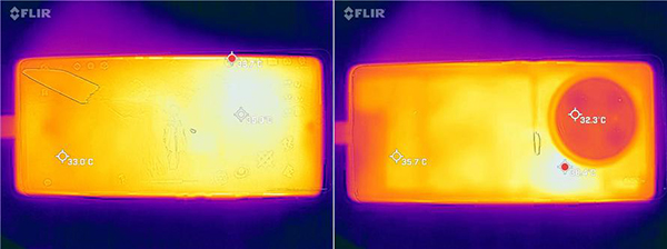 而挑戰(zhàn)《原神》,vivo X90 Pro+在60幀模式高特效下,前十分鐘基本能夠維持滿幀運行,而在10分鐘后,幀率最高鎖在50幀,雖然游戲中也偶爾會出現(xiàn)卡頓,但整體的幀率曲線還是不錯的,比之前很多驍龍8+的表現(xiàn)要更好,另外半小時后測試手機溫度,手機正面最高溫度在邊框附近為35.7℃,背面最高溫也只有38.4℃,能夠感到手機溫熱,但完全無傷大雅。