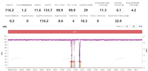 在《原神》幀率測試中,榮耀80 Pro在開啟60幀模式的時候,平均幀率可以達到59.4幀,并未出現(xiàn)此前一些產(chǎn)品上存在的強行降幀的問題,整體表現(xiàn)不錯。尤其是經(jīng)常玩《原神》的用戶,很了解玩這款游戲的苦楚,卡頓、掉幀、發(fā)熱情況常有,即使是用一些旗艦產(chǎn)品玩也不例外。不過在榮耀80 Pro上,我們看到了榮耀的調校能力,讓旗艦平臺性能得到充分發(fā)揮,同時卡頓、掉幀、發(fā)熱等問題也得到了不錯的解決。