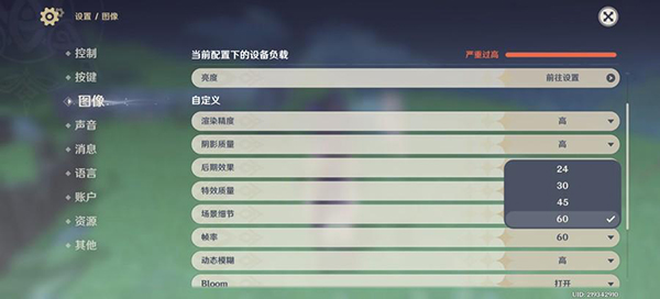 《原神》最 高可選擇60幀率
