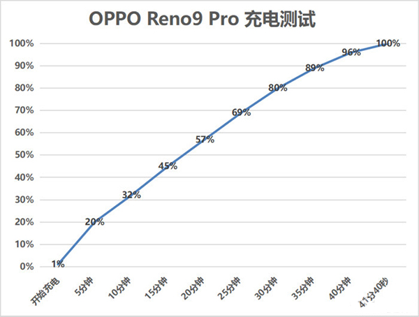 充電方面,OPPO Reno9 Pro配備了長(zhǎng)壽版67W有線快充,實(shí)測(cè)從1%電量開始充電,5分鐘充入20%的電量,41分鐘即可完全充滿。