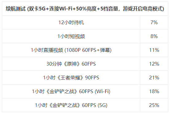 那如果是5G網(wǎng)絡(luò)的情況下呢?我們用《金鏟鏟之戰(zhàn)》60FPS測(cè)試了一下Wi-Fi網(wǎng)絡(luò)和5G網(wǎng)絡(luò)的耗電量,5G大約會(huì)比Wi-Fi多消耗7%的電量。將這7%加到每款游戲上的話,就是從充滿能連玩4小時(shí)變成只能連玩3小時(shí)的樣子。