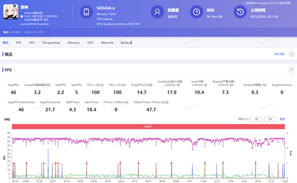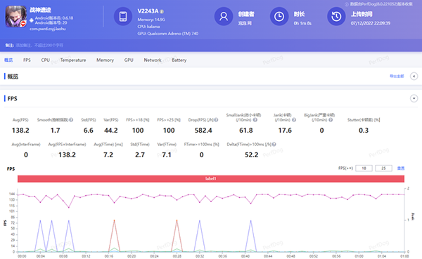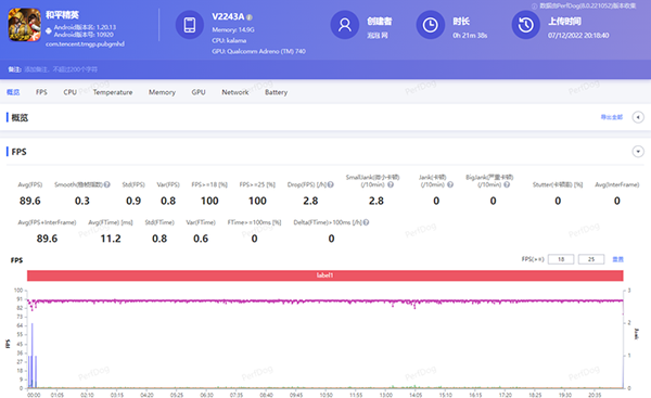 這次iQOO 11采用的V2芯片中采用了vivo自研的芯片加速器「+DLA」,這個(gè)加速器讓V2芯片的運(yùn)?速度大幅提升,能效?也提升很多,讓我們感知最強(qiáng)的就是在游戲上了。眾所周知,自研芯片V2也是一顆電競(jìng)芯。接下來(lái)再看看實(shí)際游戲的表現(xiàn)。游戲幀率測(cè)試由PerfDog提供技術(shù)支持。