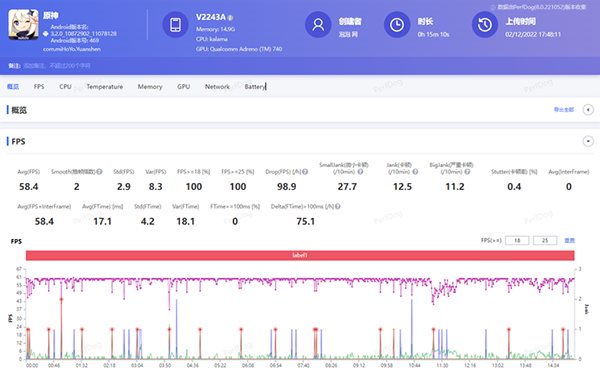 然后再看看 “征服”了一眾驍龍8+機(jī)型的《原神》全高畫(huà)質(zhì)須彌城場(chǎng)景。在15分鐘的連續(xù)跑圖測(cè)試中,iQOO 11跑出了平均58.4幀,相比大部分的驍龍8+機(jī)型都有明顯的領(lǐng)先優(yōu)勢(shì)。