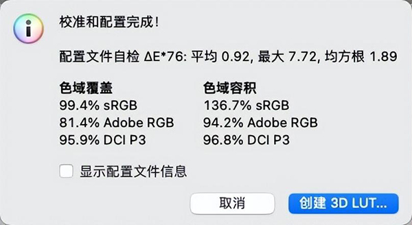 色域色準方面,我們調(diào)到了鮮艷模式進行測試,做到了100% sRGB、91% Adobe RGB和100%DCI-P3色域覆蓋,還有僅0.27的平均△E高色準,這塊屏幕真的非常頂級。