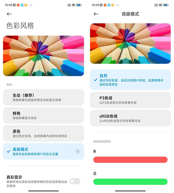 同時,小米13 Pro的屏幕在出廠時經(jīng)過逐屏校準。因此可以提供非常精準的色彩顯示。而且小米13 Pro還支持豐富的屏幕色彩管理功能,你可以在屏幕顯示色彩風格中選擇你喜歡的顯示模式,在高級模式中,你還可以調(diào)整色域支持、RGB色彩空間、HSV色彩空間和其他顯示選項,這個對色彩比較專業(yè)的用戶帶來了自定義的體驗。